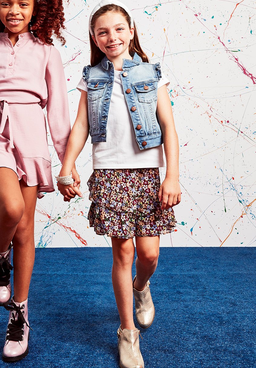 トップス Bibiy. NINA SLEEVELESS JACKET KIDPIK Girls Sleeveless Stretch Ruffle Sleeve Icon Patch